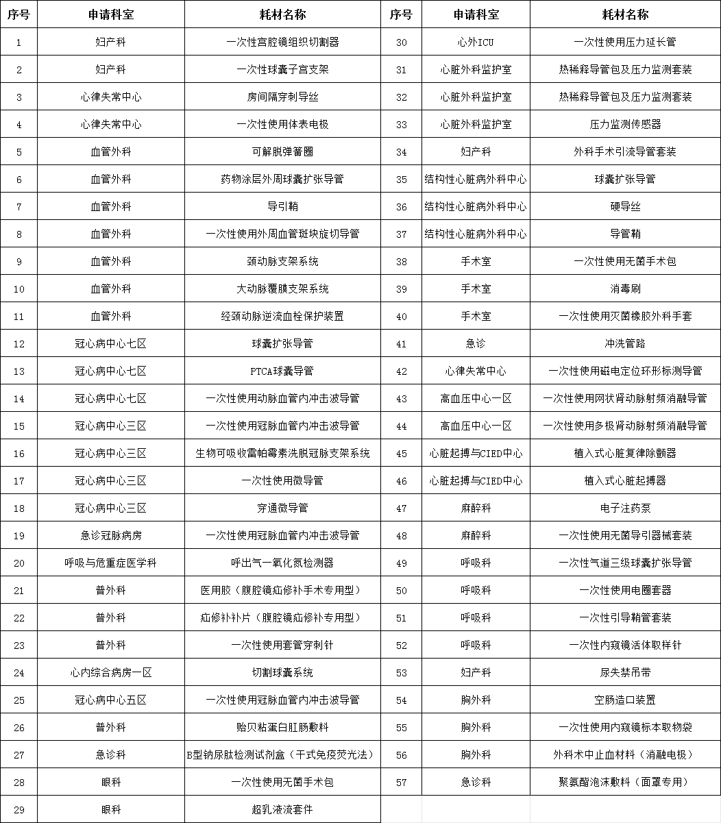 一、医用耗材调研明细(技术需求见附件1)