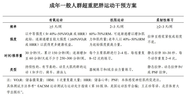 超重肥胖应以减脂为主要目标、维持瘦体重为次要目标。推荐长时间中低强度有氧运动,通常每日一次或两次。另外结合抗阻运动有助于在减少身体脂肪的同时维持瘦体重。